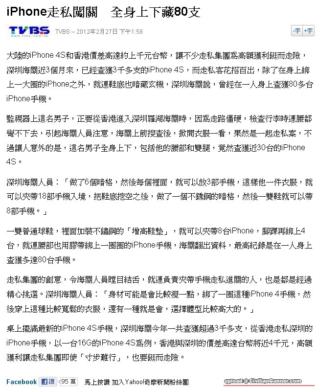 iPhone走私闖關 全身上下藏80支