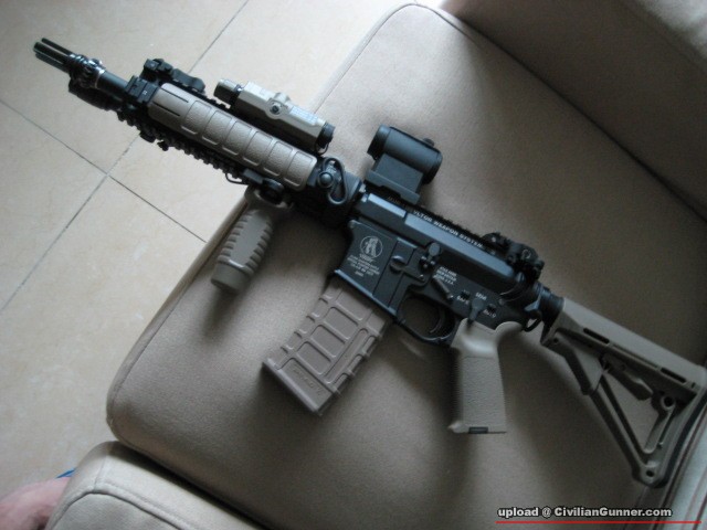 我只可以答你:上到。至於齊唔齊頂橋呀,上唔上得緊呀我就未試過,因為我冇China Made Larue 7" handguard..........