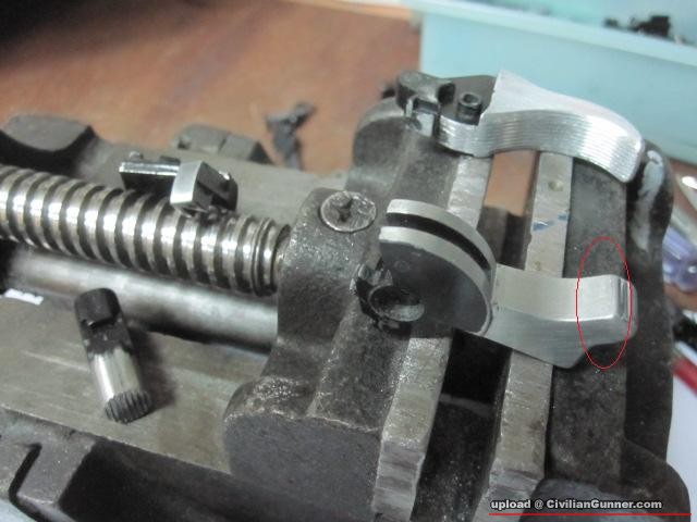 可能由於226R係強化版,所以滑架及板機分别厚左同板機大件左,同埋馬記及kj既板機都無防滑紋,所以要做番近似第一版就要改