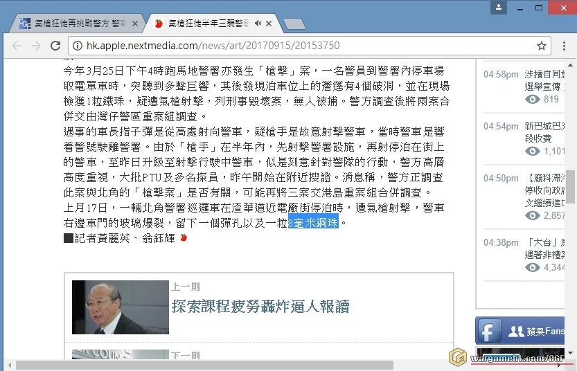 引用新聞其中一段:至晚上9時45分,警方在距現場40米外行人路上發現一粒銀色鋼珠,正調查是....