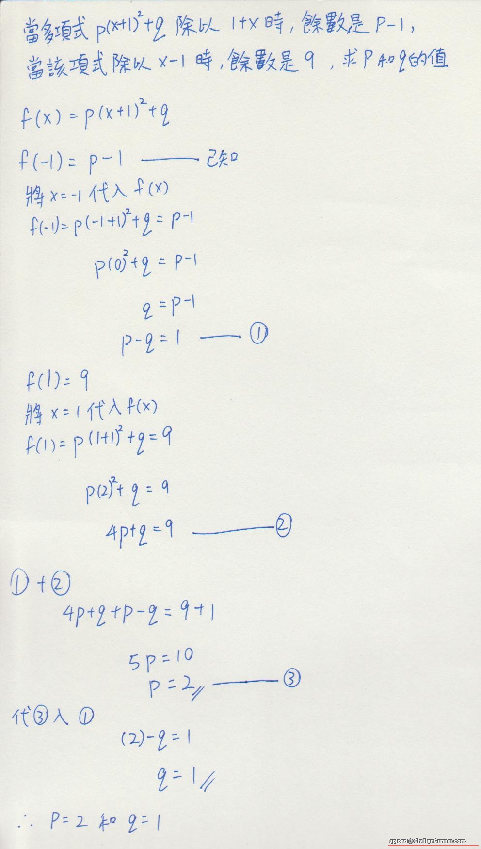續多項式.  求p和q的值