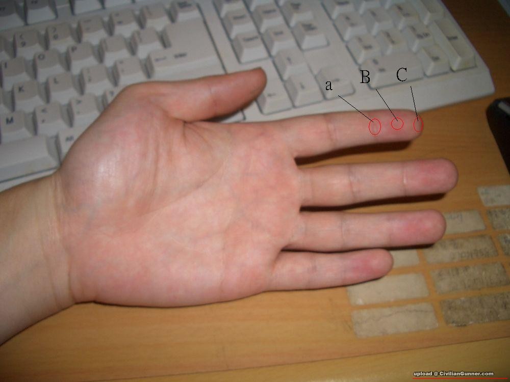 02:42-03:40 手指ge方法點解要用最前果節(上圖ge B)扳機,因為使用中間果節會令你手指最近手掌GE關節移動
