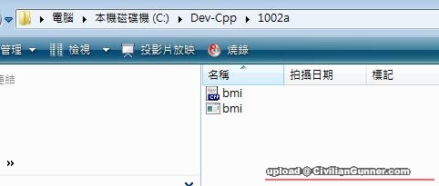 假設寫好左一個叫bmi 既.cpp檔 ( 佢係:   C drive > dev-cpp> 1002a> bmi )