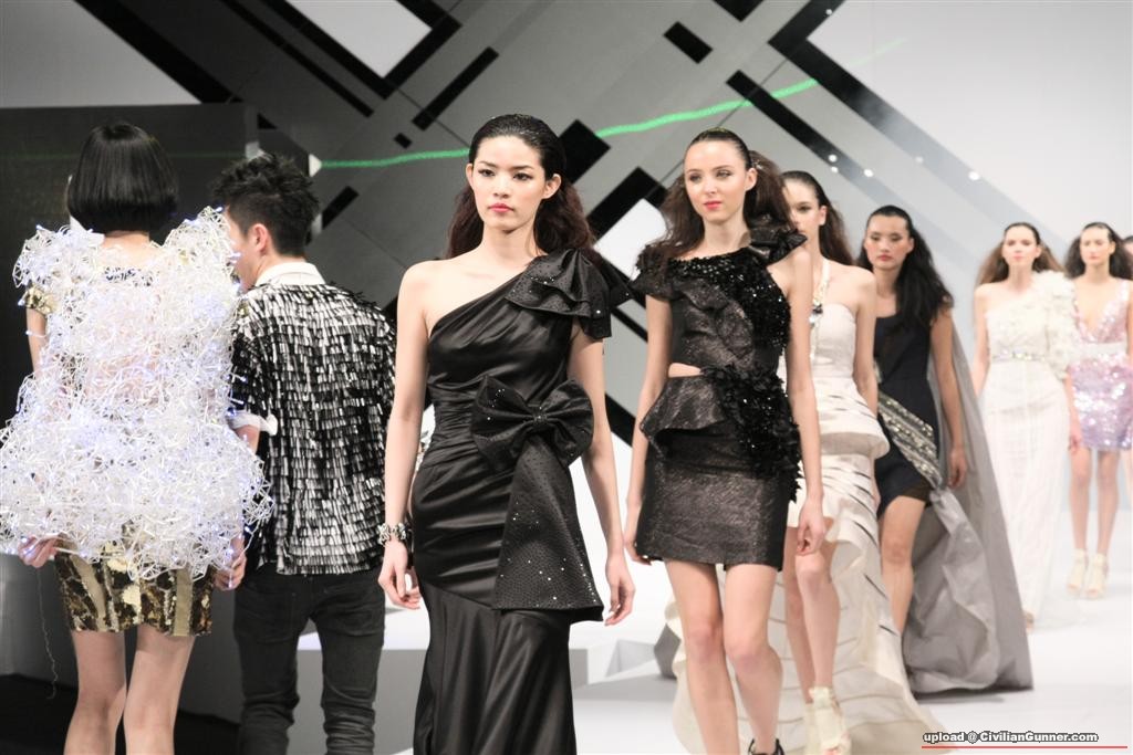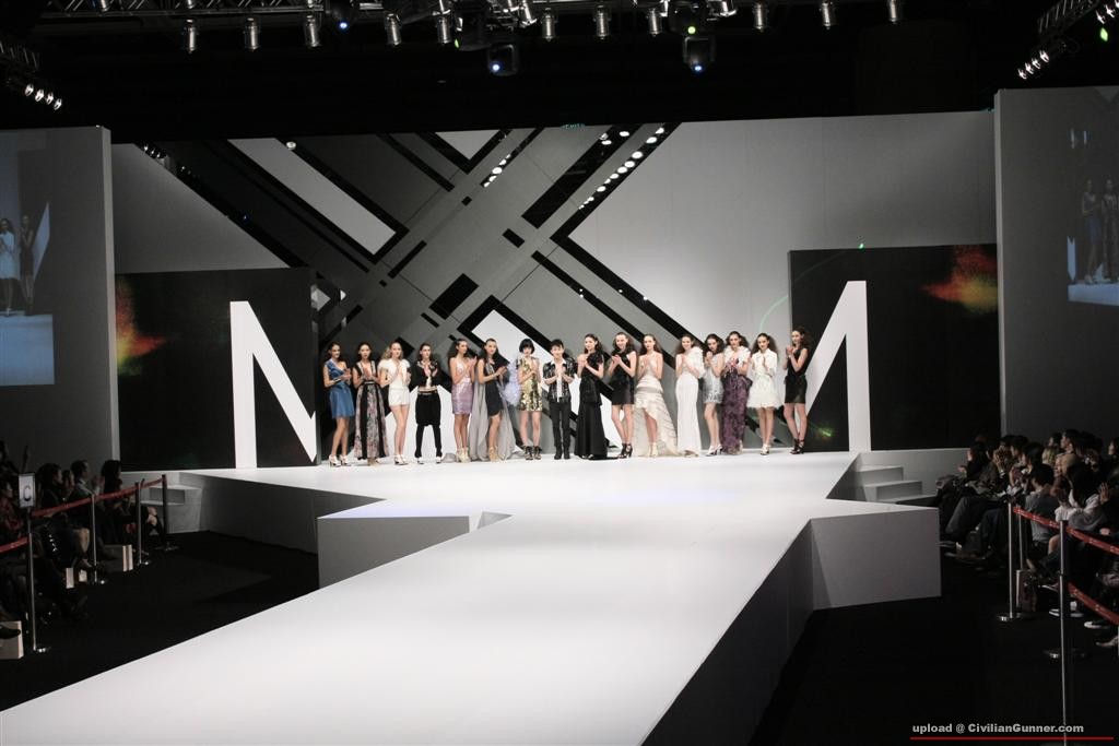 最前個Model同後面個Model已經被"一體化", 突唔到最前個Model,再加深灰色背景同黑色觀眾.........就更加突出唔到.....