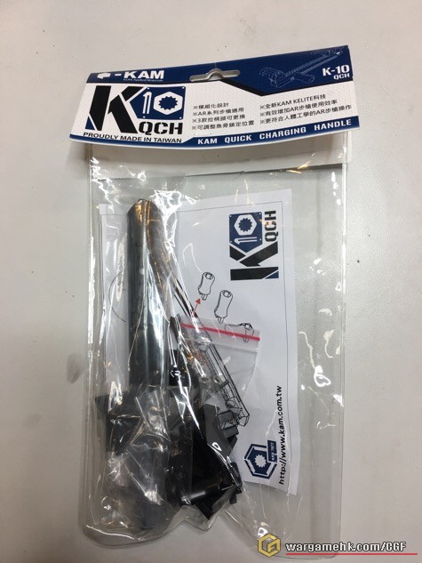 我今年12月時到了台灣MOA展覽,雲雲產品中,唯一槍用戰利品:KAM  Quick Charging Handle,當時會埸價沒記錯是1200台幣,由KAM TACT 出品,材料廠商說是由”低溫耐衝擊的硅烷類高分子聚合物”所製,有用在真槍上測試,因為這新的拉柄位置在彈匣正上方,安裝後可更快做出charging動作,還有如果安裝了長倍數鏡之後,不用怕長鏡阻了AR系列的原來拉柄,台灣設計,讚一個,很有創意的產品