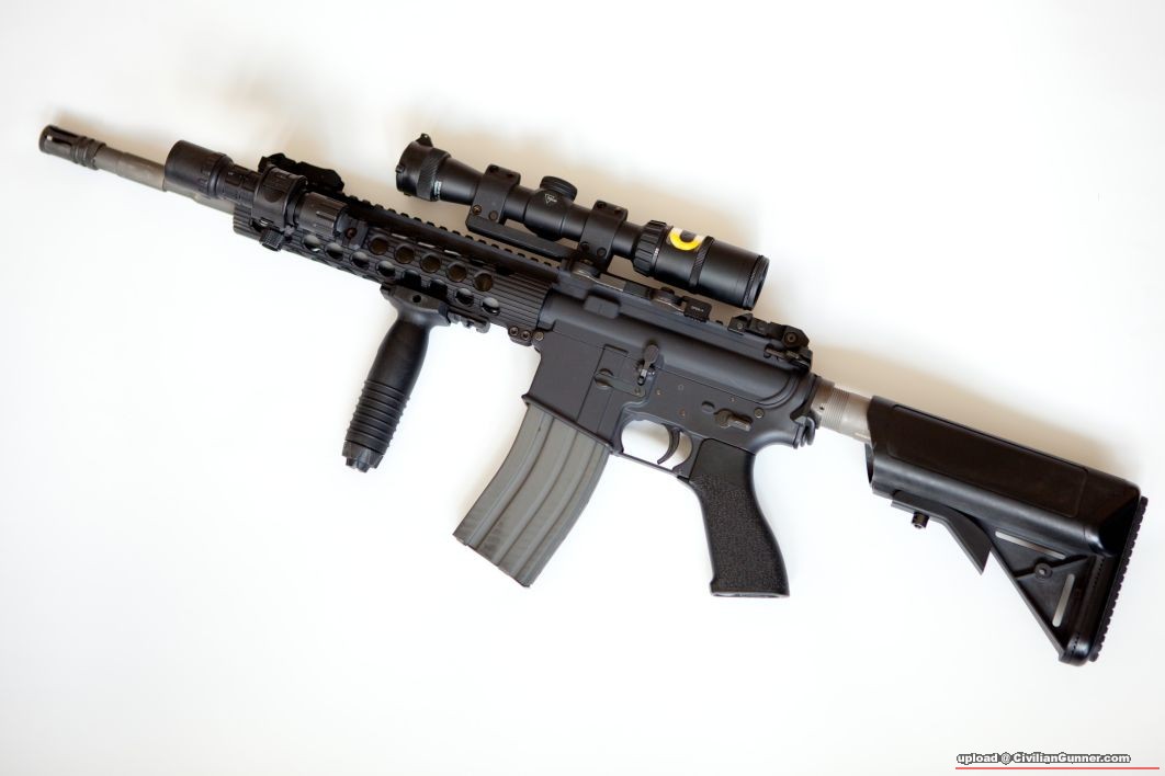 原帖由 jpg 於 3-7-2010 03:49 發表 照睇係m4 kit, 14.5 外管, troy trx 9" 骨, gp/tangpodown style motor grip.