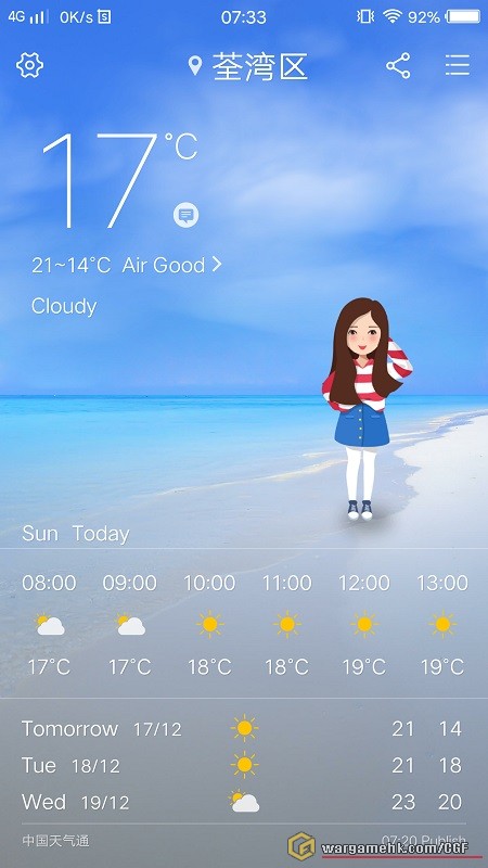 早上出門前看天氣預告,今天氣溫在 14-21 度,出門一刻 17 度: