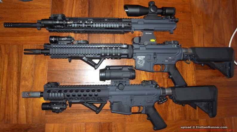 原帖由 fwkwong 於 5-11-2010 00:42 發表 TRX Latest look of all members Noveske 12" Larue 12", 14.5" barrel, looks nice with switchblock TRX 9", 10.5 barrel The new barrels are very nice