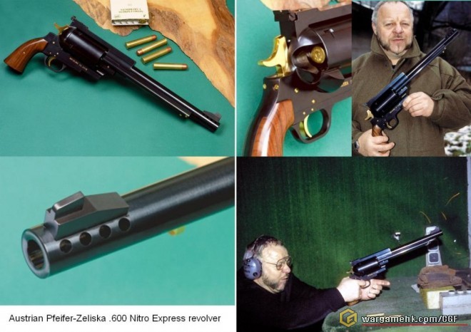 The .600 Nitro Express Zeliska Revolver is a single-action revolver from Pfiefer Firearms in Austria. The handgun can fire a 900 grain slug at ...