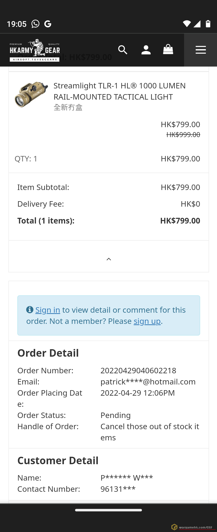 個唔會發貨既hkarmy website 又開返工, 大家小心