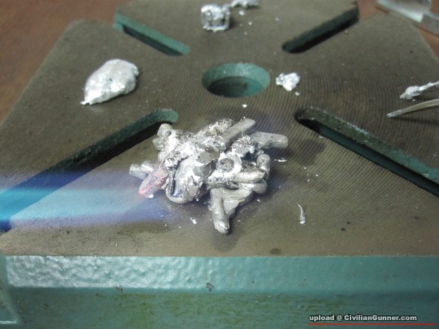 用辣雞座底兜做溶池,然後一層層咁加上去(要控制火路,減少錏鉛合金既沙窿)