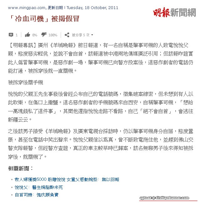 原帖由 nec338 於 18-10-2011 15:47 發表 大家有沒睇今早報紙 連維一出手幫助小妹妹架 阿婆都俾人說 真係有邊個咁去幫