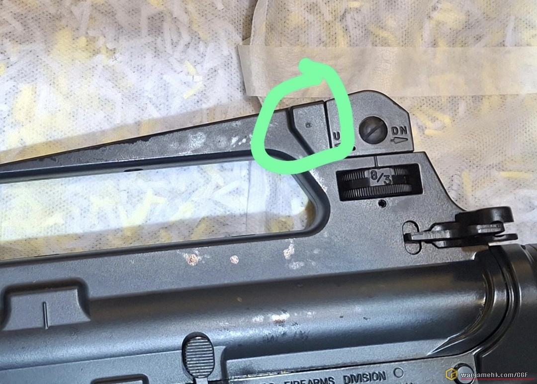 其實主觀覺得係水口位 ( 這應該是尼龍件?),剪完之後工廠大媽磨2 野的狀態,如果係撞凹,應該唔會甘齊整,旁邊的平面都會下陷,當然我沒買這槍我不能肯定是正常還是瑕疵。